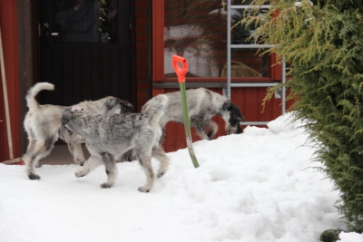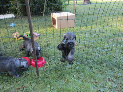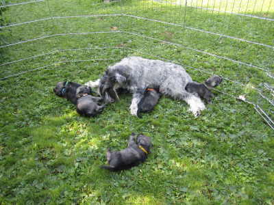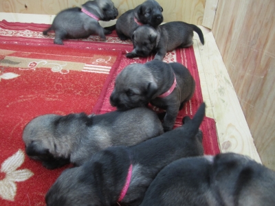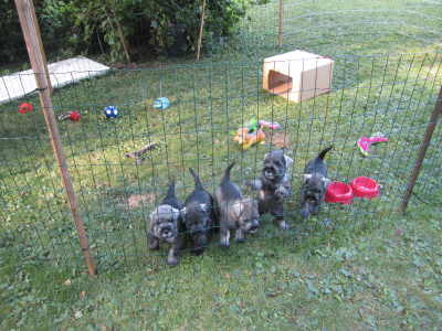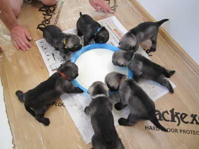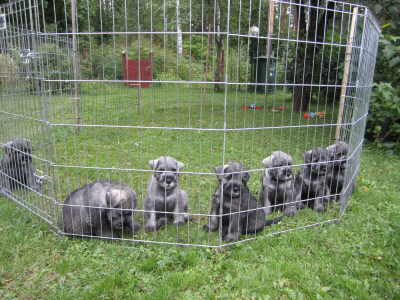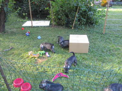 | Kaksi poikaa touhuaa | 7-viikon ikäiset pennut kaikki samassa kuvassa | |||