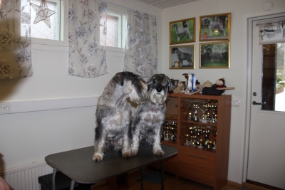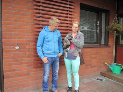 | Omistaja Sanna-.Mari Pyy ja pentu Nemo | Omistaja Riitta Heikkilä ja pentu Elli | |||