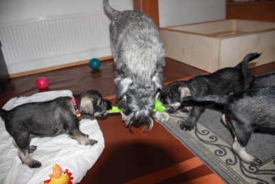 Laila hoitaa hyvin pennut ikä 3 vko | Suloinen poika | ||||