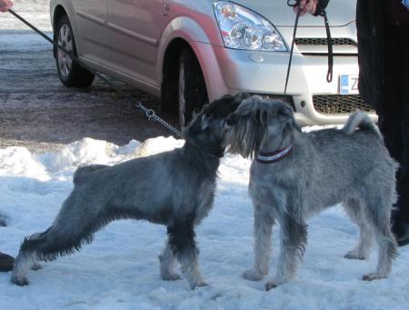 | Alla, Timo, Mira ja Pearl Tallinnassa joulukuussa 2009 | Joensuun kv- näyttelyporukkaa koirineen 30.5.2010 | |||