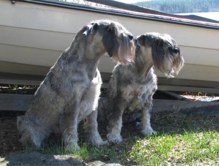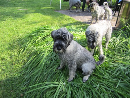 | Saku trimmauspöydällä | Mira-äiti ja lapset Saku, Laila ja Riia | |||